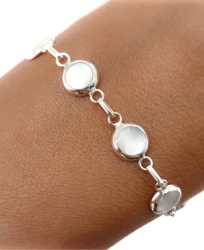 La pulsera nácar es un diseño que fusiona la pureza de la plata con la luminosidad del nácar, creando una joya única que realza tu estilo con sutileza y sofisticación.